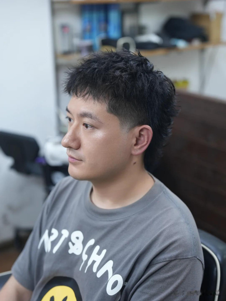 比如上面这款狼尾纹理碎盖也是不错的选择,两侧推短,后脑勺头发不要剪短,要留一束狼尾,长度到肩膀即可;