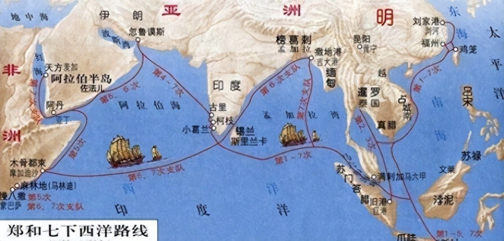 就在哥伦布出发的几十年前,大明朝的郑和带着两万七千人的无敌舰队,浩浩荡荡下了七次西洋。