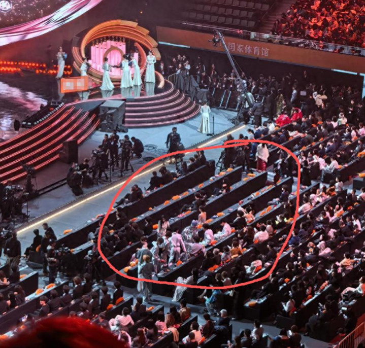 没想到这一次晚会开始后,座位区却直接空了一大半。