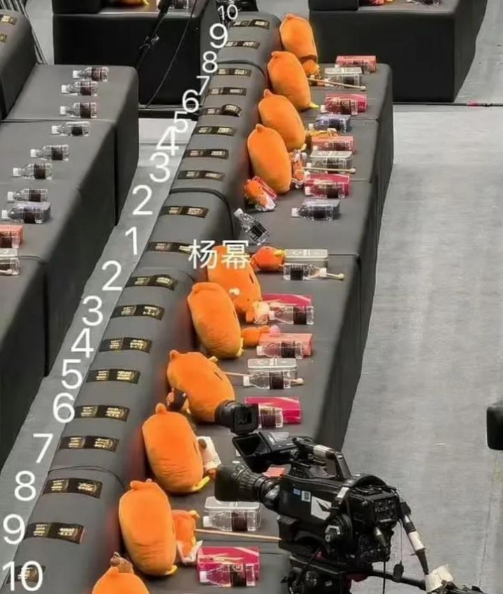 而杨幂粉丝也在为她正名,细心网友还画出序号,证明杨幂原本就坐在准C位,她没有私自换名牌的动机。